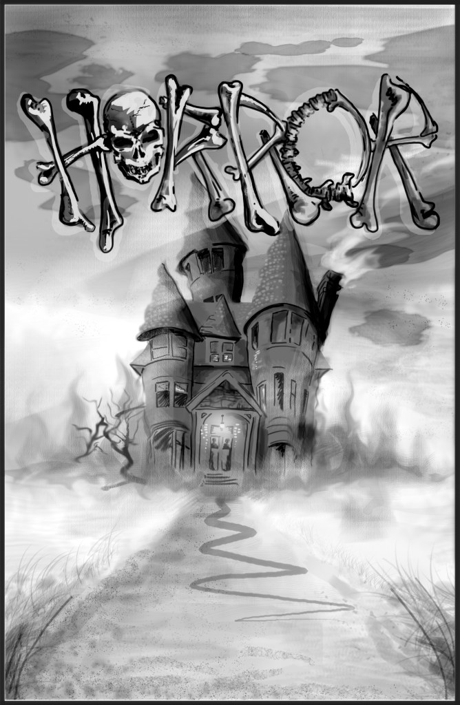 The cover was to feature a illustration that would work with many other contributing artists. I wanted the typography and image to look inked and smudged and foggy. I took inspiration from horror movie covers and novels.