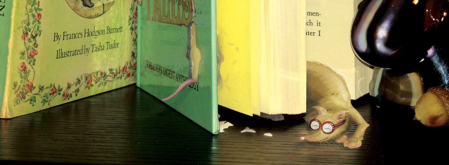 The Object of this work was to create an illustration based on a conversation overheard in a public place. The phrase I used was “He ate through that book so fast!” I overheard the conversation between two elderly ladies riding the bus. I fell in love with the little fellow.