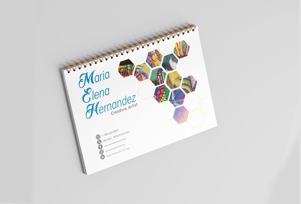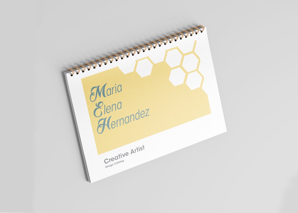 The client provided me with the photos of her works. I retouched the images and created a opening and closing page for her. Those included her wordmark/tittle page and contact info and social media details on the final page.